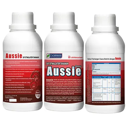 - Aussie adalah zat stimulan yang diformulasikan secara presisi dengan kandungan fulvic acid berkualitas tinggi, kalium, magnesium, amino acid, serta berbagai trace element penting. Kombinasi ini membantu memaksimalkan penyerapan nutrisi tanaman secara cepat, mempercepat perkembangan akar, meningkatkan pertahanan alami secara organik, serta memulihkan tanaman dari stres biotik maupun abiotik.